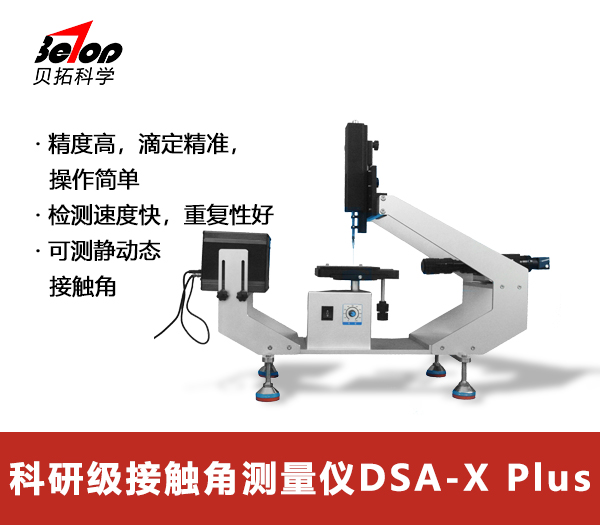 專家型接觸角測量儀 DSA-X Plus由貝拓科學自主研發設計生產,配置先進的高分辨高速工業相機搭配LED冷光源,獲得高清圖像并通過全新優化的軟件進行計算擬合獲得準確的測試數據。儀器機構結合了人體工程學,提供人性化的自動化進樣調節、樣品臺調節、光學系統調節等,使測試變得精確而快速高效。